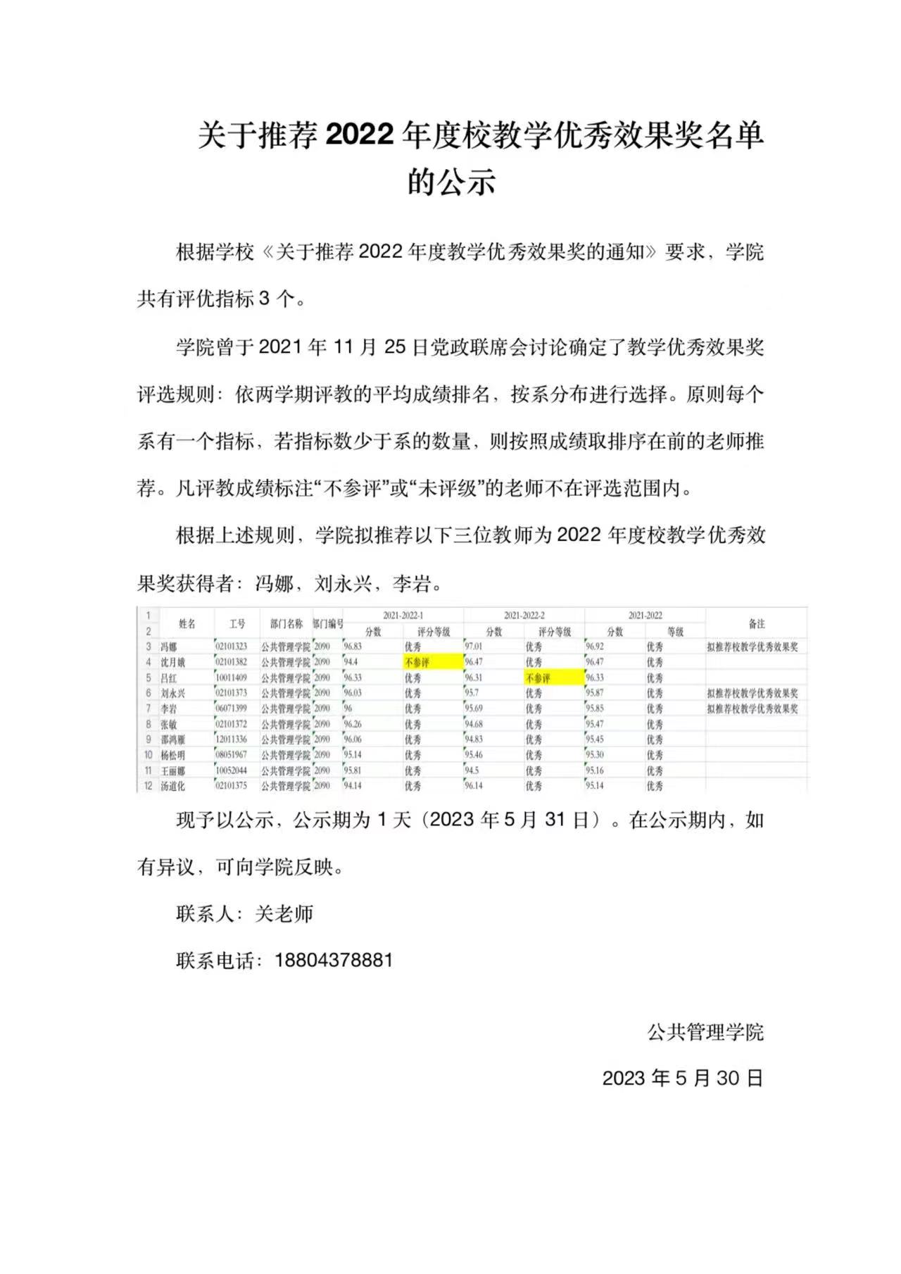 52av 关于推荐2022年度校教学优秀效果奖名单公示
