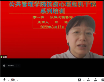 抗疫心理关爱系列培训第一讲在线拉开帷幕。本次讲座以“认识心理咨询”为主题,由国家二级心理咨询师、公共管理系教授汪泳老师主讲。