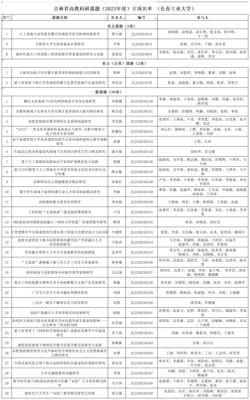 2023年度吉林省高教科研课题立项名单(52av )_重点