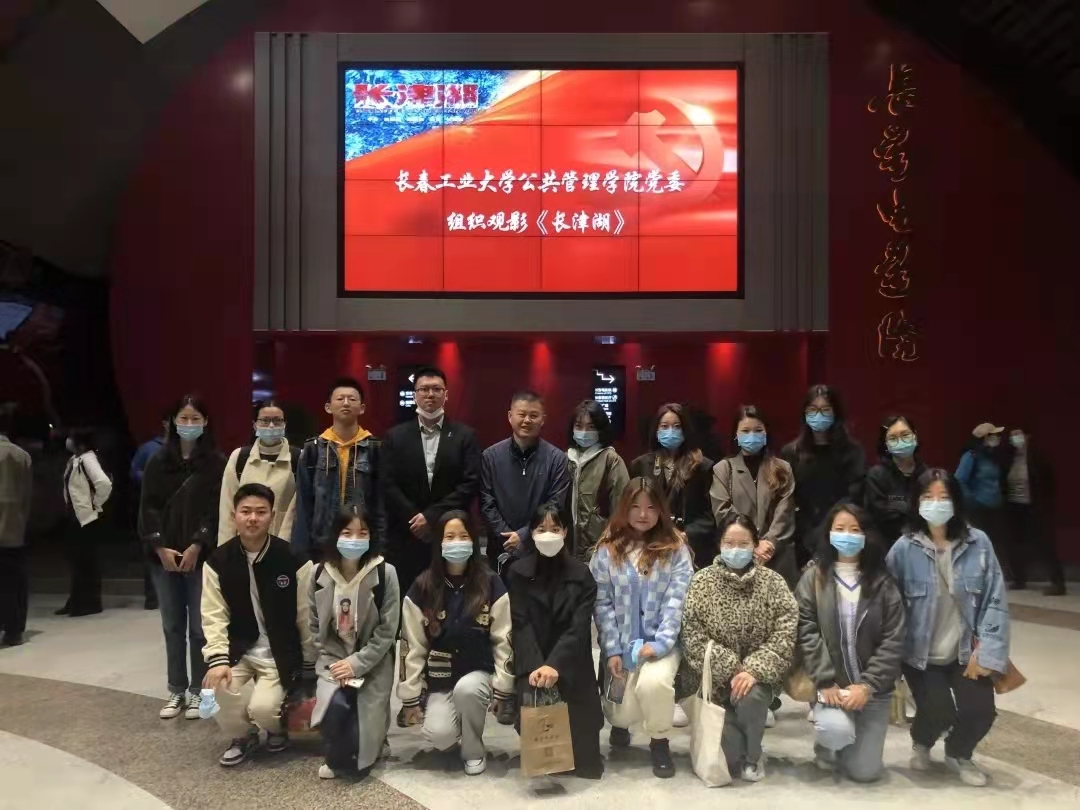 党委组织主题党日活动,于长影电影院观看爱国影片长津湖,没有课程安排的教工党员及学生党支部部分党员代表参加活动。