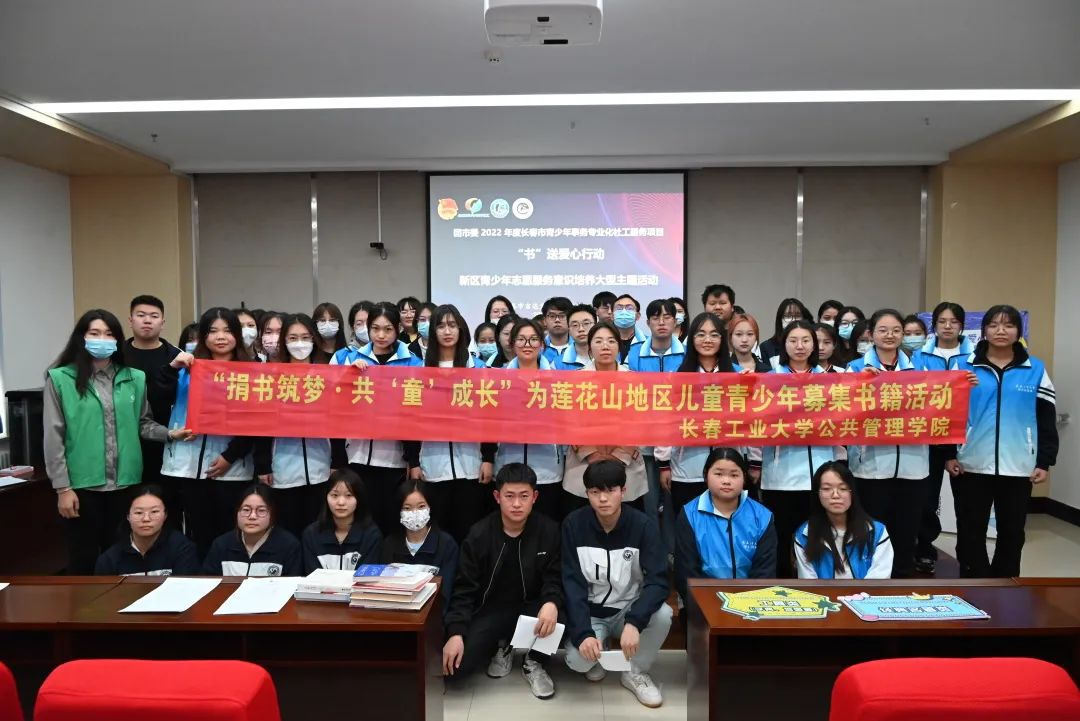 为响应习近平总书记关于加强全民阅读的号召,形成爱读书、读好书、善读书的浓厚氛围,在2023年世界读书日到来之际,学院团委于2023年4月18日下午16:20,在主教学楼301会议室与吉达方舟社会工作服务中心共同开展“捐书筑梦,共享书香”为莲花山地区儿童青少年募集书籍活动,共有86名青年志愿者参与本次活动,捐赠书籍数量143本。此次活动得到了共青团长春市委、净月高新区团工委的大力支持。