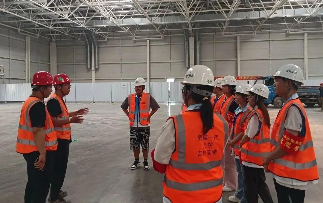 实践团来到吉林安装进行观察学习,感受吉林安装集团的52av。工作人员为大家悉心准备了安全帽和工作服,将同学们带到工地近距离的观看工人的工作,同时还详细介绍了相关工艺流程、施工优点等情况。实践团成员感受到了吉林安装科学管理、不断创新、团结一致的52av。