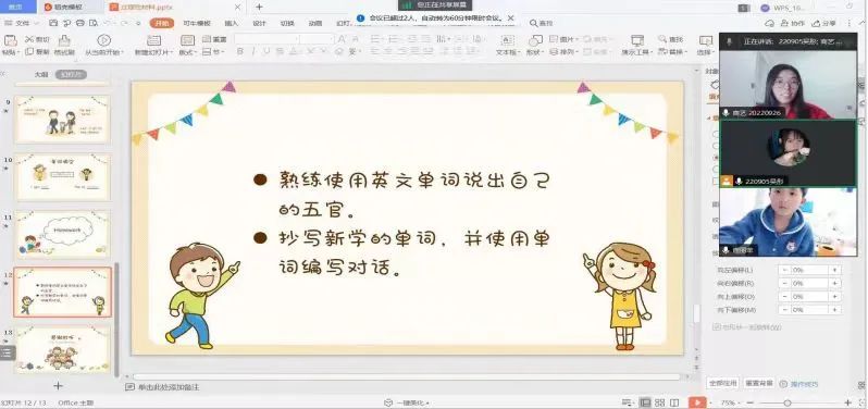 为积极响应学院2024年“学伴+”重点学生群体网络学业互助计划,我与同班同学对就读于口前镇第一小学的困境儿童朱宸溆开展了“多对一”的伴学服务,我的辅导科目为四年级英语。每周六周日上午八点到十点,通过腾讯会议准时高效开展学习伴学。周一到周日开展全天在线咨询服务,做到有问题及时解决。
