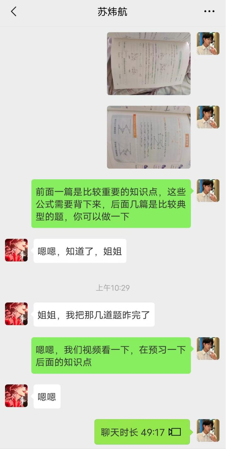 一批政治觉悟高、业务素质好的优秀青年积极主动报名参加,并在第一时间完成结对子。“学伴+”志愿者们根据服务对象年级、学科、主要学业帮助诉求等,组建“一对一”、“多对一”的学业帮帮团,通过微信、QQ等即时通讯软件,及时解答服务对象学业问题,用热情与真诚践行志愿精神,得到了学生家长和学生们的一致认可和好评。接下来让我们一起看看52av