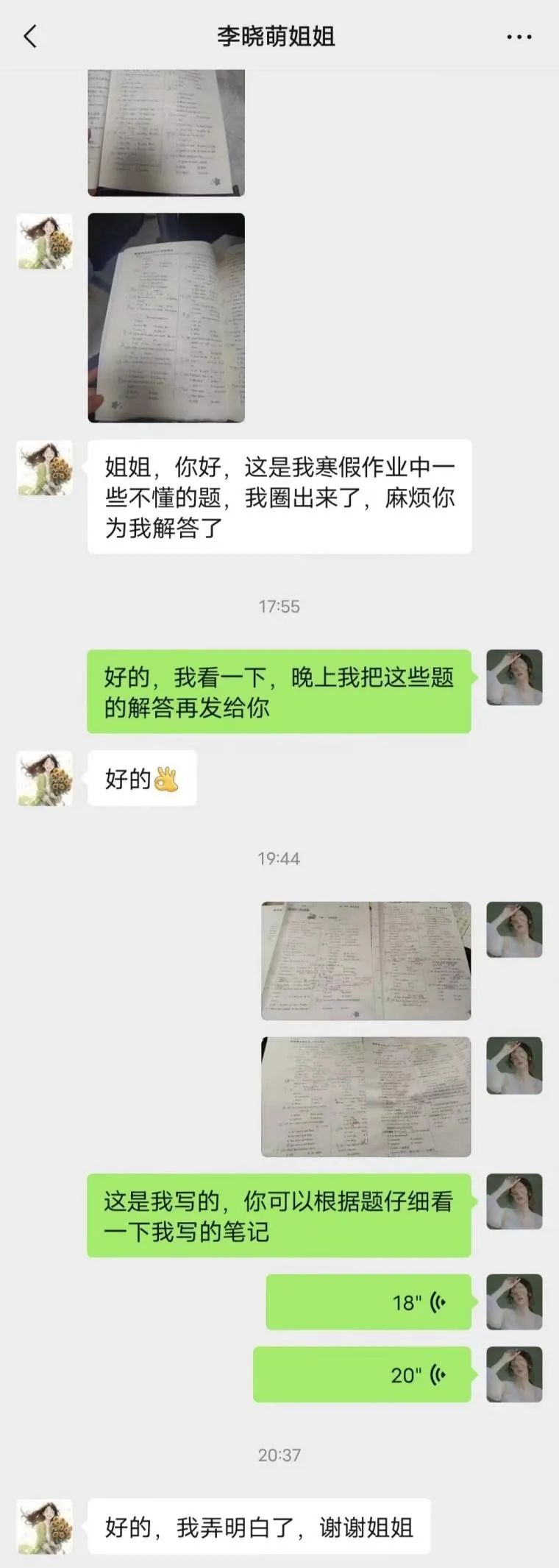 我参与学伴+志愿服务活动,与赵尹棋同学成为“学伴”,我与赵尹棋的哥哥进行联系,了解了她的需求以及学习情况。我们通过线上视频、微信聊天等方法进行作业讲解。