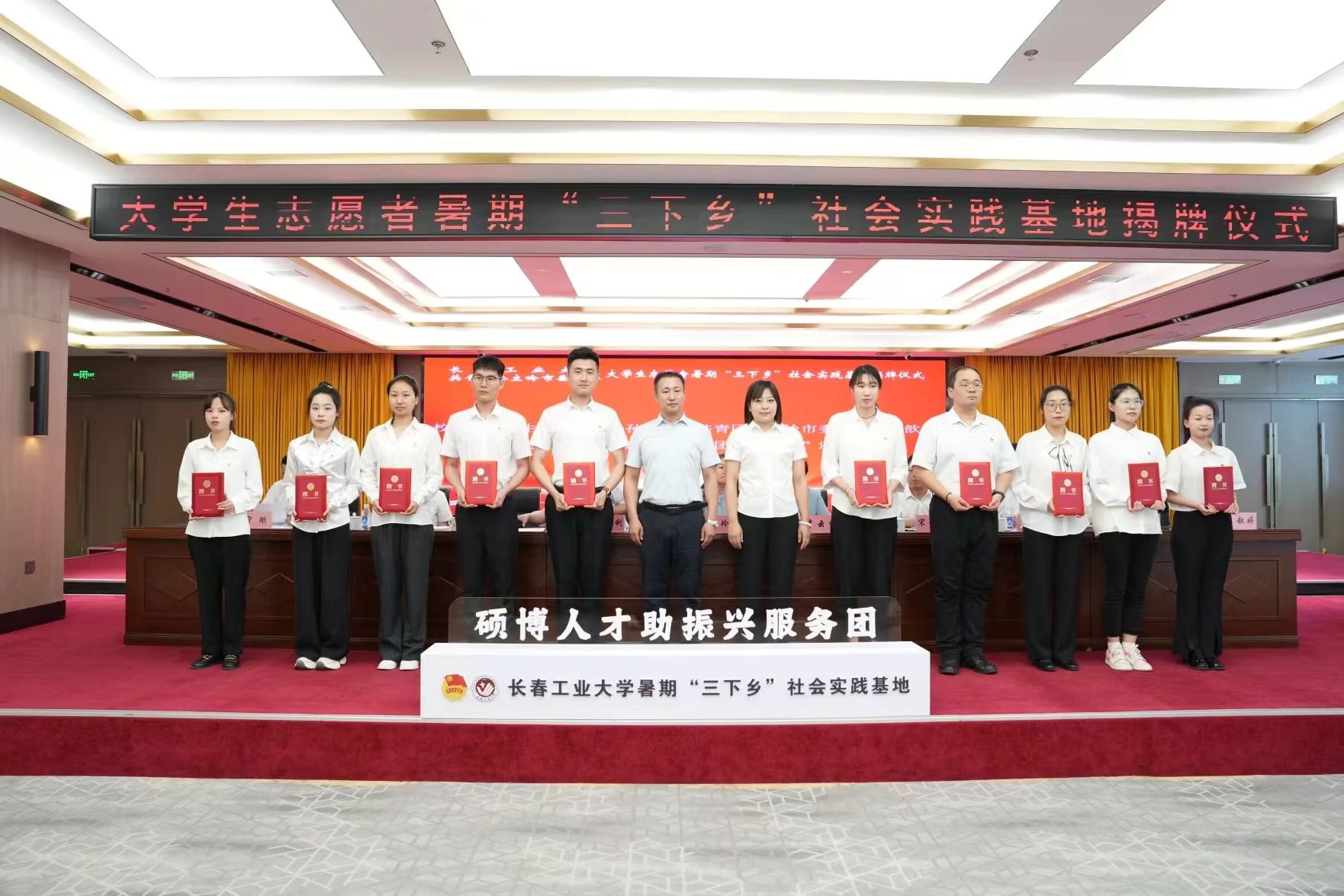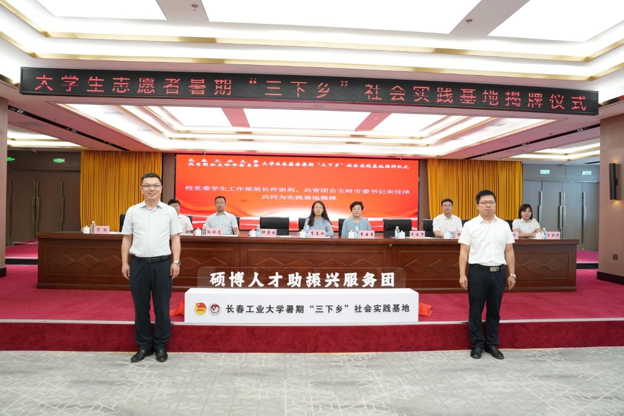 的10名团建指导员、大学生志愿者、青马骨干学员社会实践团队赴公主岭市参与学校与共青团公主岭市委员会共建社会实践基地暨“硕博助振兴计划”揭牌仪式、开展“跟着总书记脚步看吉林”主题社会实践活动。