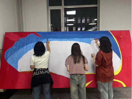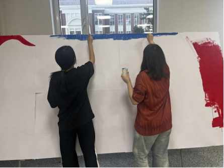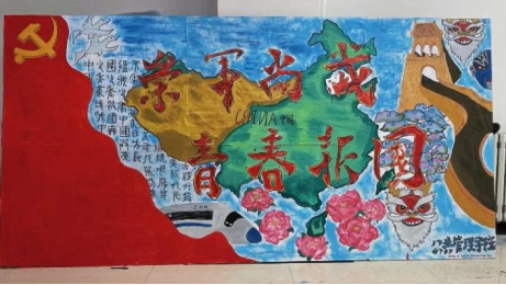 学生满怀热情,用作品绘出新生的爱国主义情怀与集体荣誉感。在板报制作过程中,从构图、调色、绘画、粗画、细描,到最后的补色每一步都认真完成。他们在面对困难时互相鼓励、互相理解、互相帮助,一起迎接挑战。