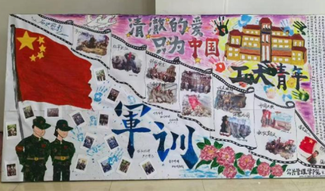 “清澈的爱 只为中国”——利用时间轴展示出中国军人的历史佳绩并且将学子们在军训中的珍贵的记忆定格在板报上,成为新生们成长的见证。将“清澈的爱,只为中国”的精神融入军训,培养他们成为有理想、有道德、有文化、有纪律的社会主义建设者和接班人,激励着公管学子以中国军人为榜样,爱党爱国,为社会作贡献。