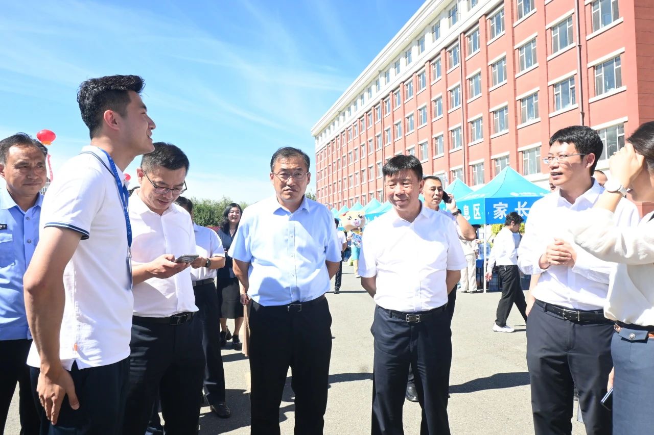 学校领导深入迎新现场,了解新生报道情况,关心慰问工作人员和志愿者,与新生及家长亲切交谈。