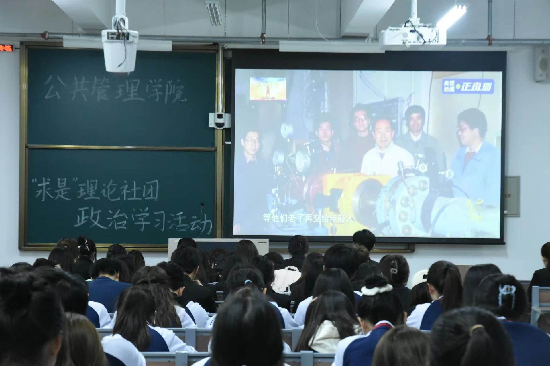 “求是”理论社团于北湖东校区主楼101教室,组织全体成员观看感动中国事迹短片,展开了一场意义深远的精神洗礼之旅。