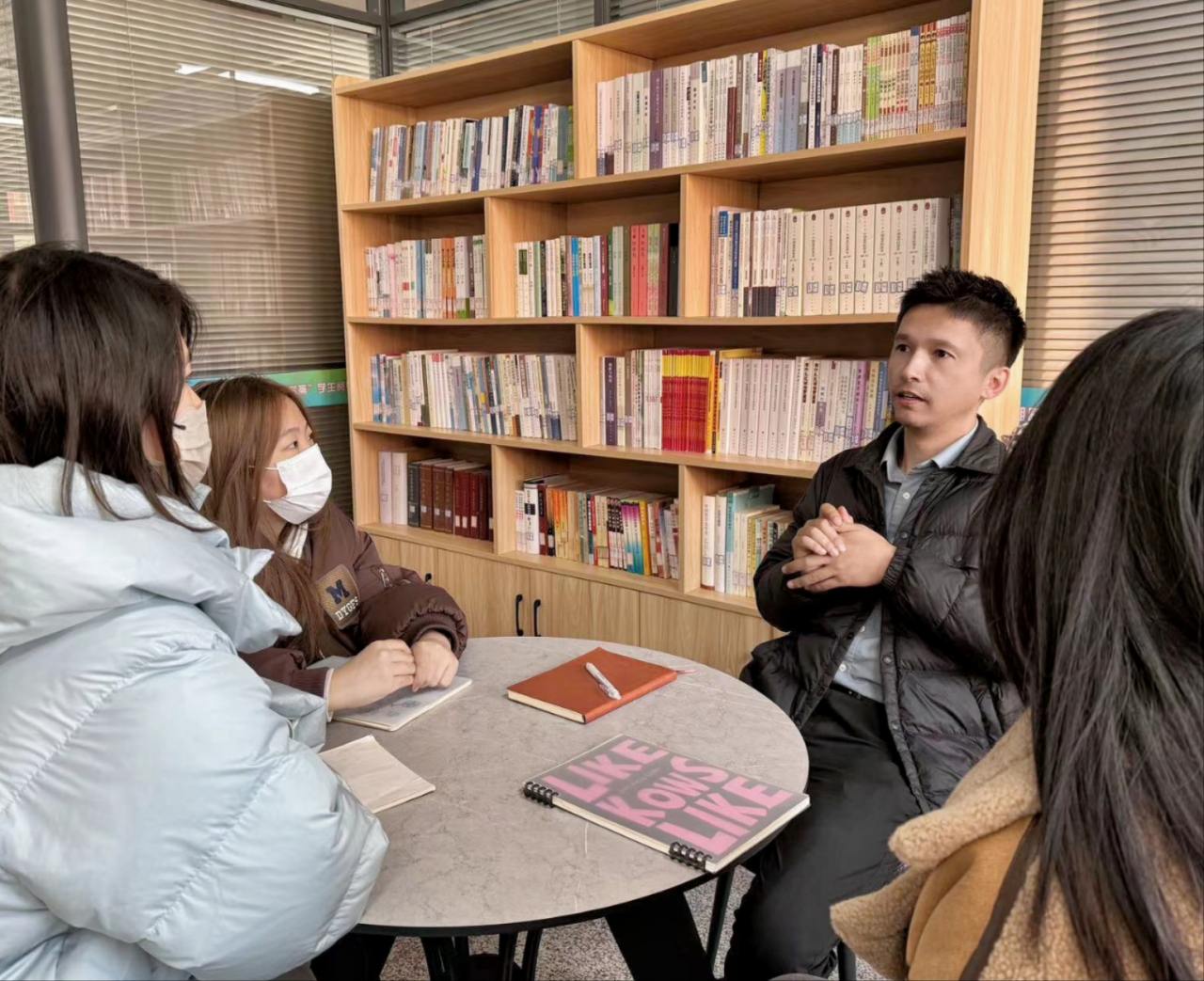 2022级辅导员哈那提别克·米乃、社会工作系教师马楠楠及2022级的同学们在“一站式”社区服务中心活动室开展了学业帮扶活动。