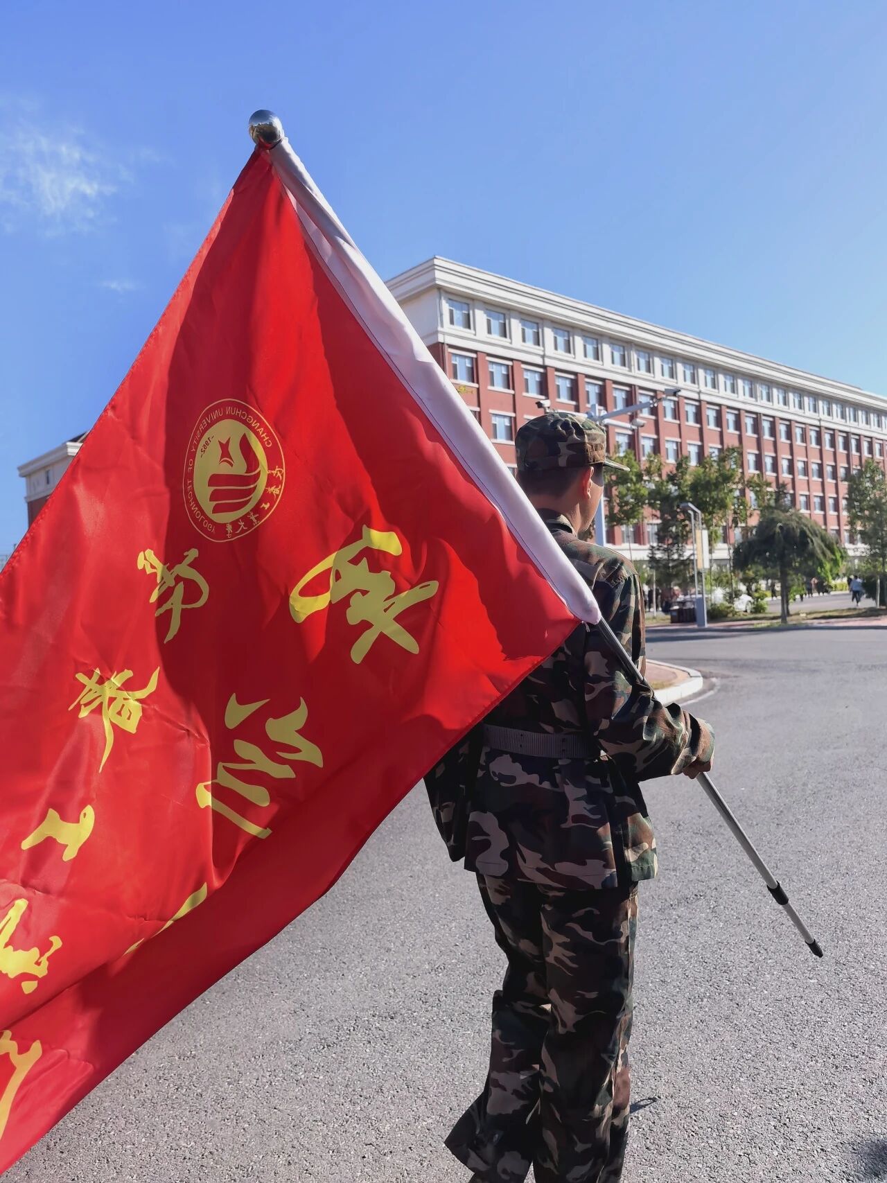 天刚蒙蒙亮,身着迷彩的新生们已在操场上集结。朝阳为他们的戎装镀上一层金辉,“军训十连”的红旗在风中猎猎作响。教官一声令下,立正、稍息、齐步走……一个个动作从生疏到整齐,晨光见证着他们的蜕变。