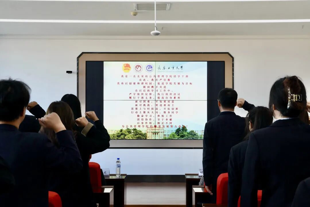 全体团学干部进行宣誓仪式,以铿锵誓言表达了“全心全意为同学服务”的坚定信念,承诺将以饱满的热情、务实的作风投身学生工作。