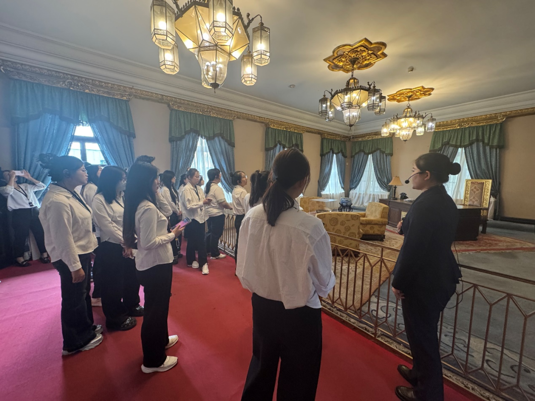 作为中国近现代史重要的历史遗址之一,伪满皇宫曾是日本帝国主义侵略中国东北、推行殖民统治的政治中心,这里的每一处建筑、每一件文物都镌刻着那段屈辱与抗争并存的历史印记。在博物院讲解员的引导下,党员们先后参观了勤民楼、缉熙楼、同德殿、东御花园等历史遗迹,通过实物、影像及场景复原资料,直观了解伪满洲国时期的屈辱历史,深刻体会到国家落后挨打的沉痛教训。