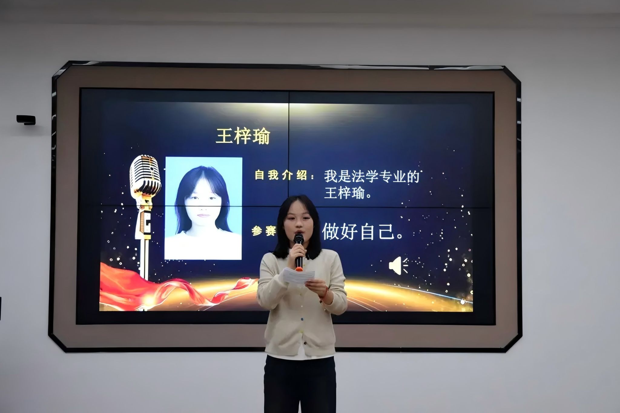 新闻网讯(通讯员 刘宸炜)“声韵暖如玉,入耳清灵;辞气慨而慷,尽显青春锋芒。”为丰富校园文化生活,营造积极向上、健康文明的校园文化氛围,提升广大青年学生的语言表达能力、逻辑思维能力,11月17日晚7时,“新声绽放,语你同行”“金话筒”主持人大赛决赛在北湖东区主楼301教室圆满收官。9名选手在本次比赛中同台竞技,学院党委组织员崔元慧老师、学生党支部书记初靖皓老师莅临指导。让我们共同回顾这场“声”与“情”的盛宴!