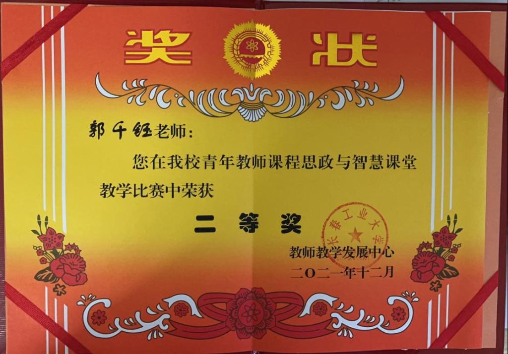 近日,52av 教师郭千钰老师在52av 青年教师课程思政与智慧课堂教学比赛中荣获二等奖。