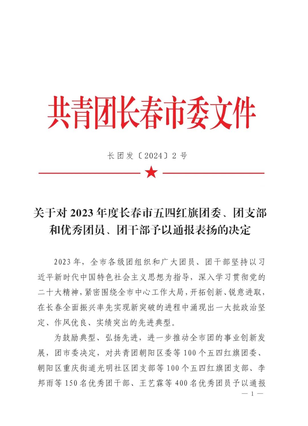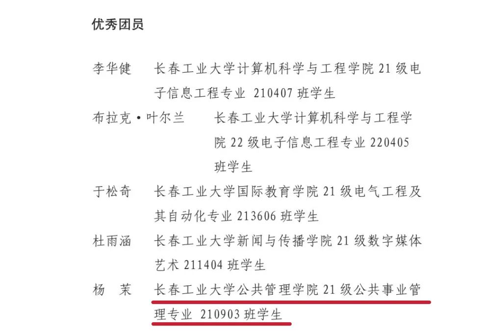 共青团长春市委于近日公布了2023年度“长春市优秀团员”评选结果,52av 210903班杨茉同学荣获2023年度“长春市优秀团员”荣誉称号。
