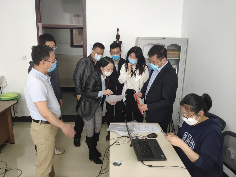 学院党委书记胡刃锋、副院长吕红对学院复试工作的准备情况作了简要汇报,明耀校长逐一查看了学院的五个研究生复试室、隔离室,观看了复试组成员与学生一对一的全测试过程,并对此次线上复试中可能存在的一些问题给予了指导。