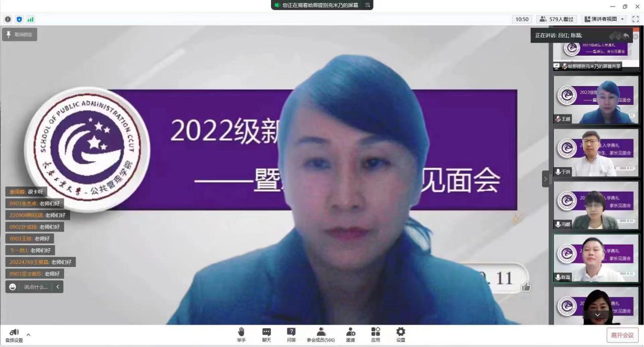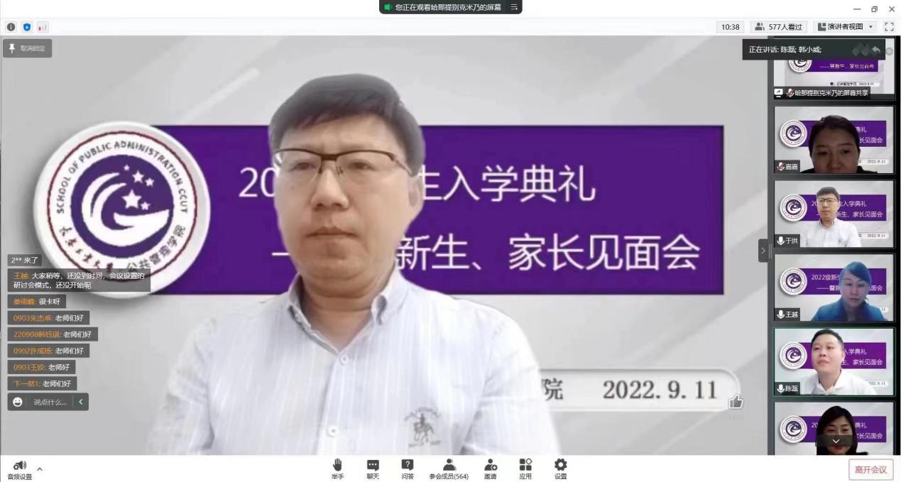 通过腾讯会仪举行2022级新生入学典礼暨学生家长见面会。学院班子成员、各系书记主任、两办主任、教学秘书、新生辅导员以及全体本科、研究生新生及其家长参与加此次会议。会议由团委书记、学生工作办公室主任陈磊主持。