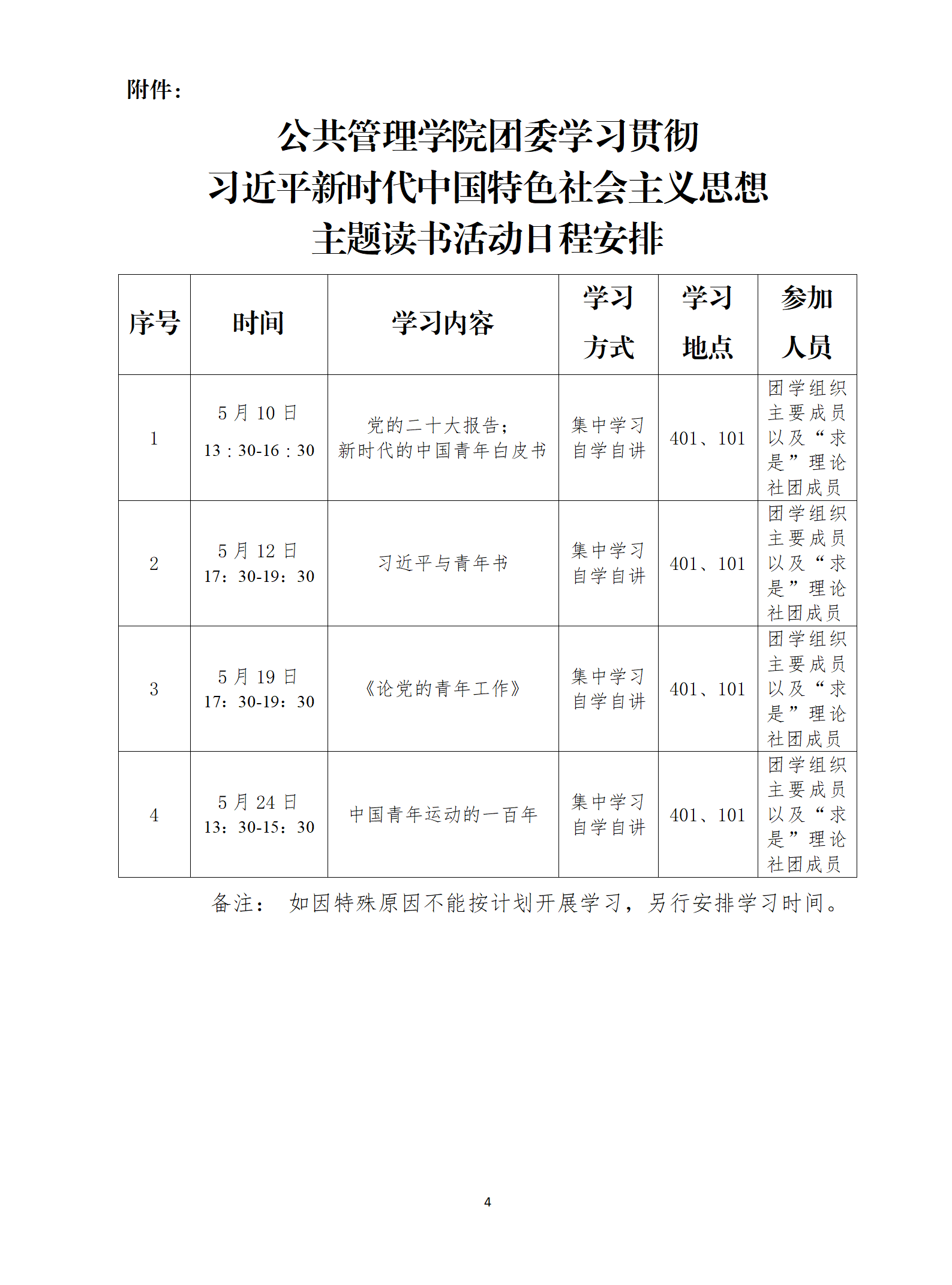 团委学习贯彻习近平新时代中国特色社会主义思想主题读书活动日程安排