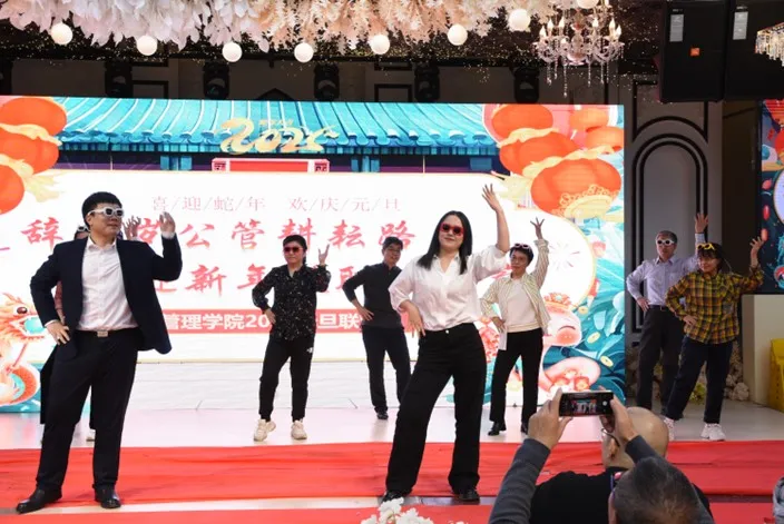 精彩节目,轮番上演。有歌曲、舞蹈、游戏、合唱、诗朗诵等。老师们走下讲台,登上舞台,或欢歌曼舞,或引吭高歌,或幽默诙谐。在公管这个大家庭,老师们载歌载舞迎新年。本次联欢会还荣幸邀请到了学校党委副书记、学院联系点领导李东玲教授和优秀校友刘洋以及在学院工作过的领导老师参加,并为大家送上了新春祝福。