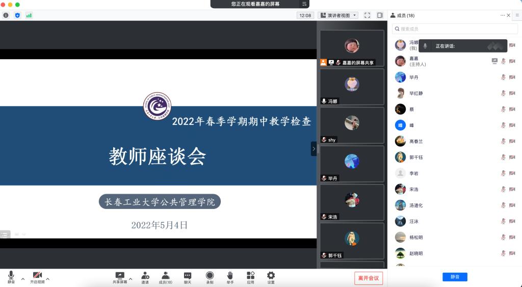 于2022年5月4日下午15:00通过腾讯会议召开2022春季学期期中教学检查教师座谈会。本次座谈会由学院副院长冯娜老师主持,并邀请院督导高春兰教授作为嘉宾,和与会教师深入交流。