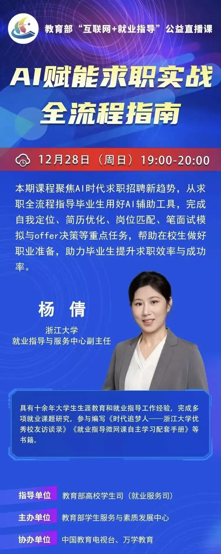 课程预告——教育部“互联网+就业指导”公益直播课:AI赋能求职实战全流程指南