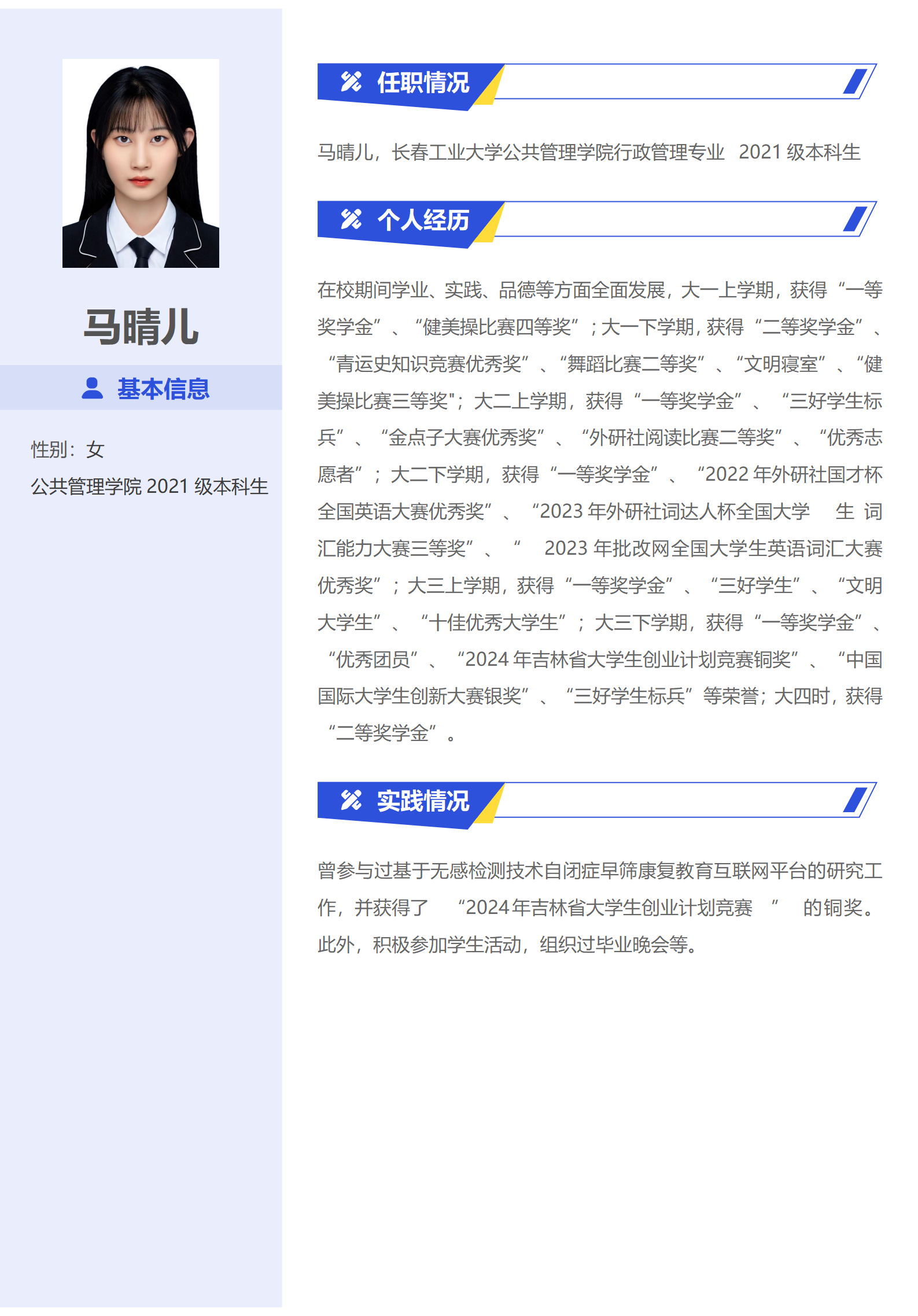 优秀毕业生——马晴儿